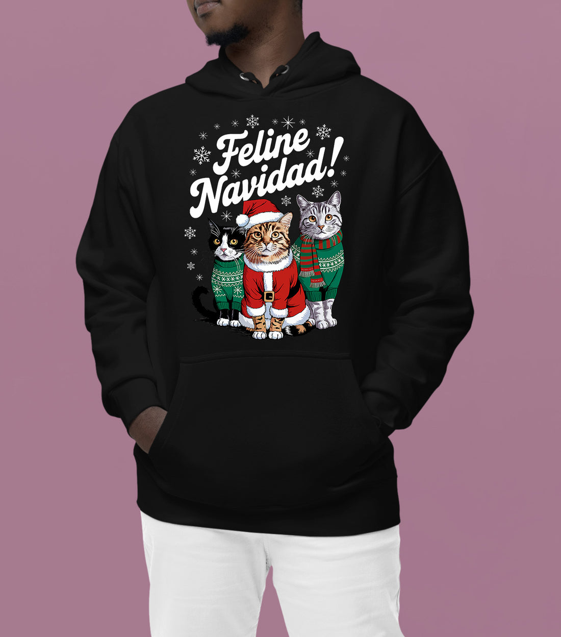 Christmas Cats for Everybody - Festive Cat Portrait Artwork for Cat Lovers - Cozy Holiday Kitty Keepsake Hoodie