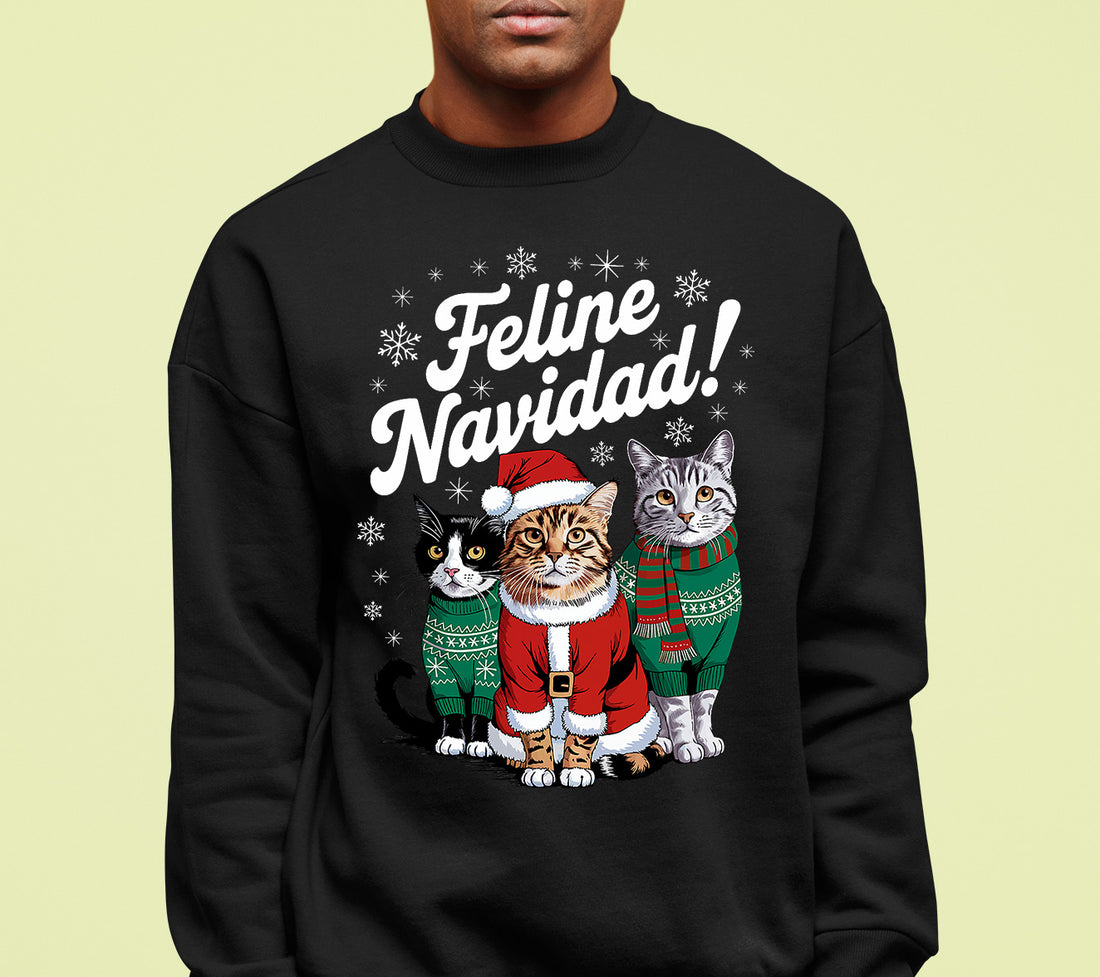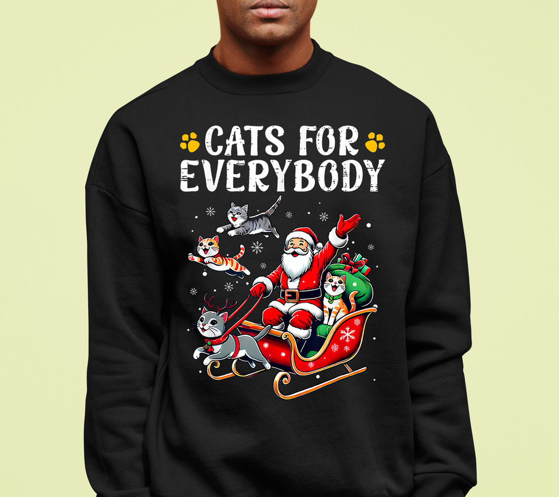 Christmas Cats for Everybody - Festive Cat Portrait Artwork for Cat Lovers - Cozy Holiday Kitty Keepsake Sweatshirt