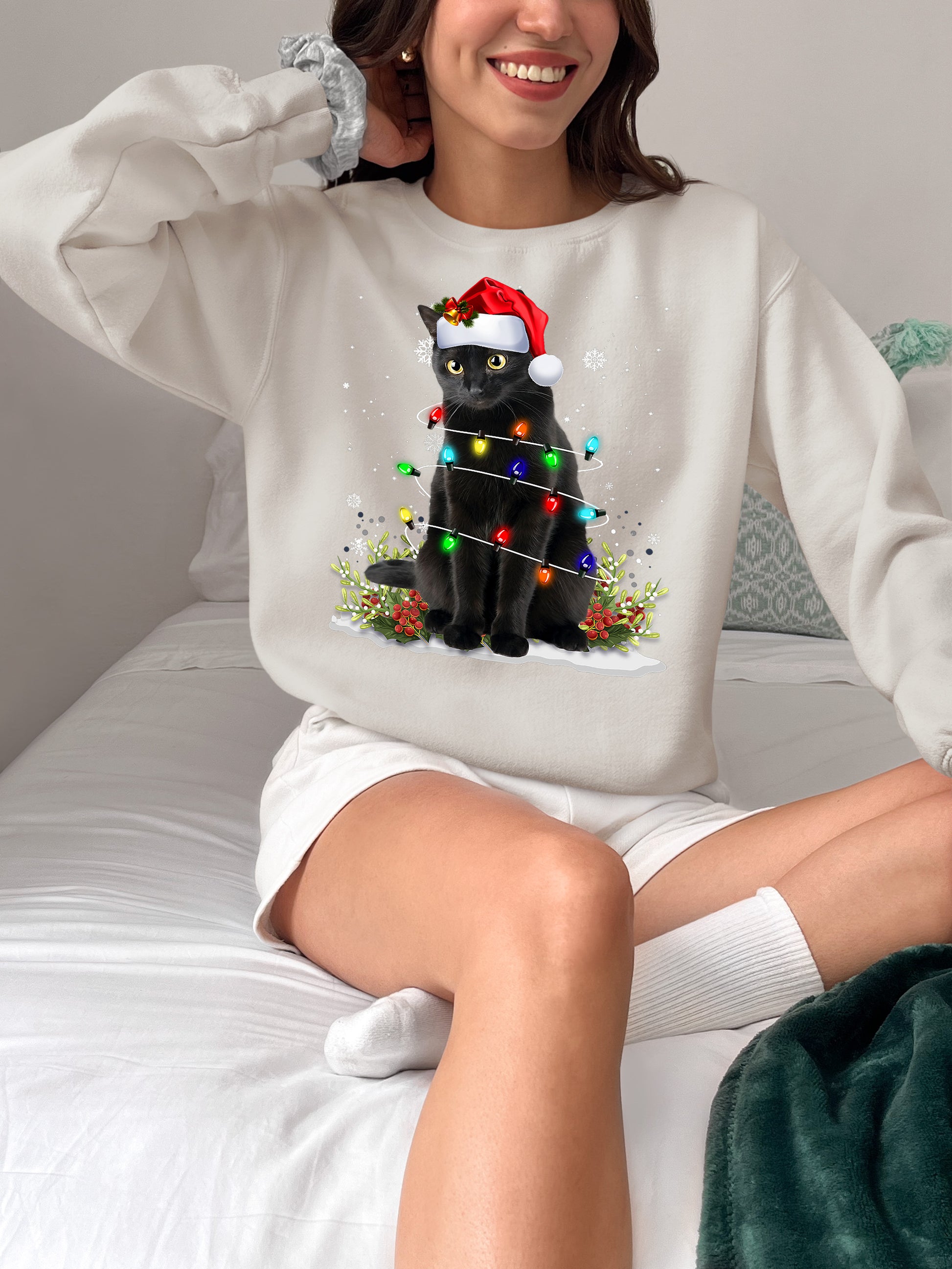 Christmas Cat Wrapped in Lights - Cute Festive Kitty in Holiday Glow, Perfect Gift for Cat Lovers, Cozy Seasonal Charm Sweatshirt