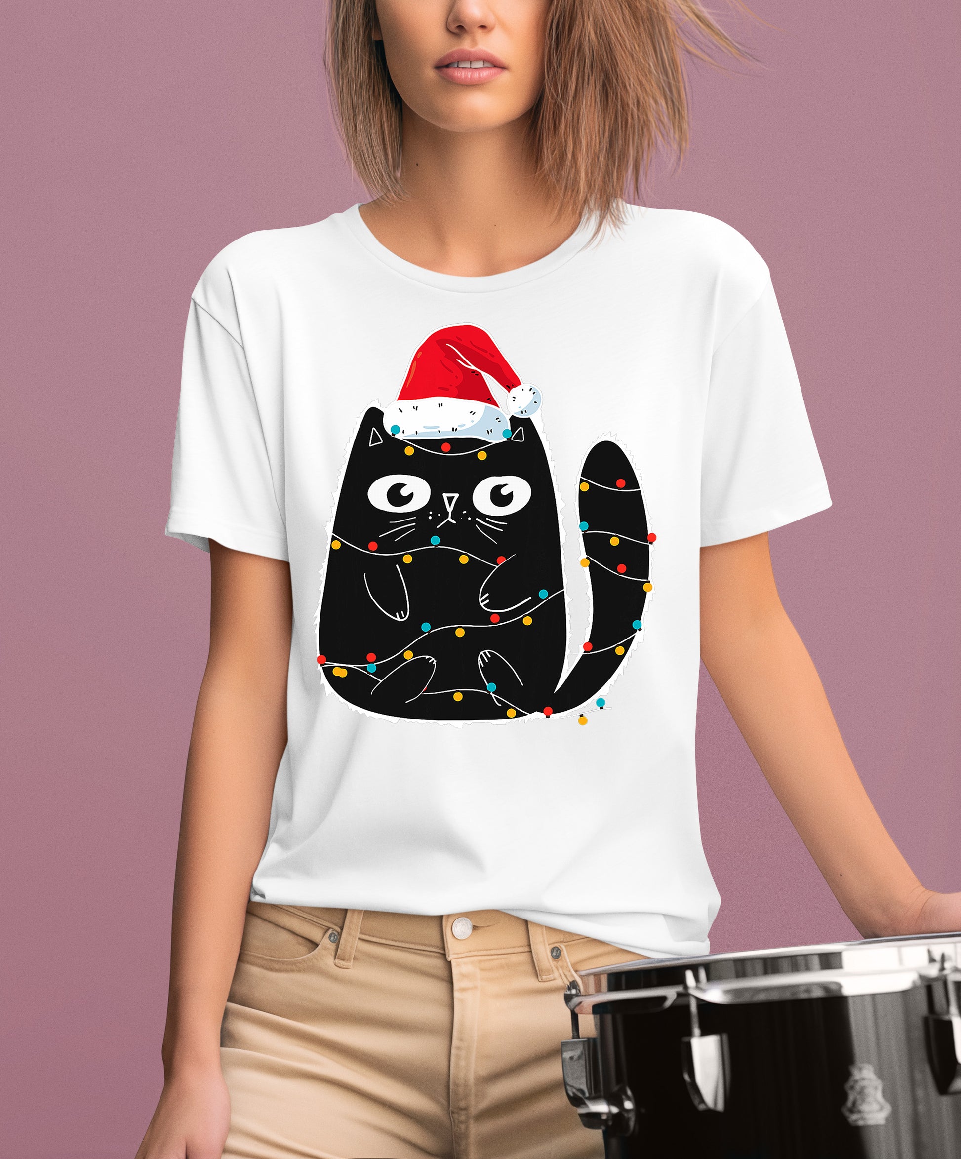 Cute Cat in Santa Hat - Christmas Feline Themed Gift for Holidays T-Shirt