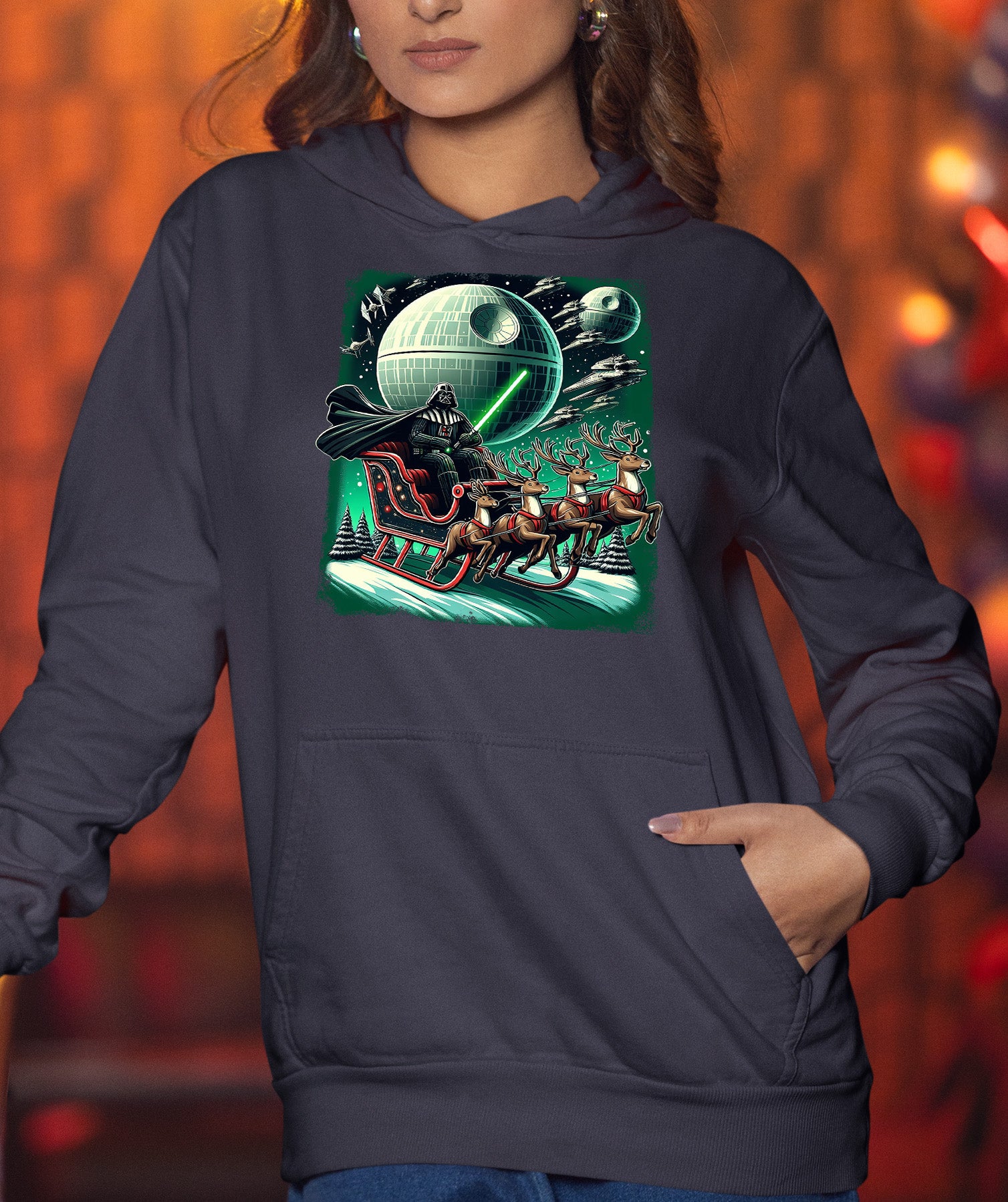 Star Wars Death Star Christmas Light Saber Holiday Galaxy Gift Idea for Sci-Fi Fans Hoodie