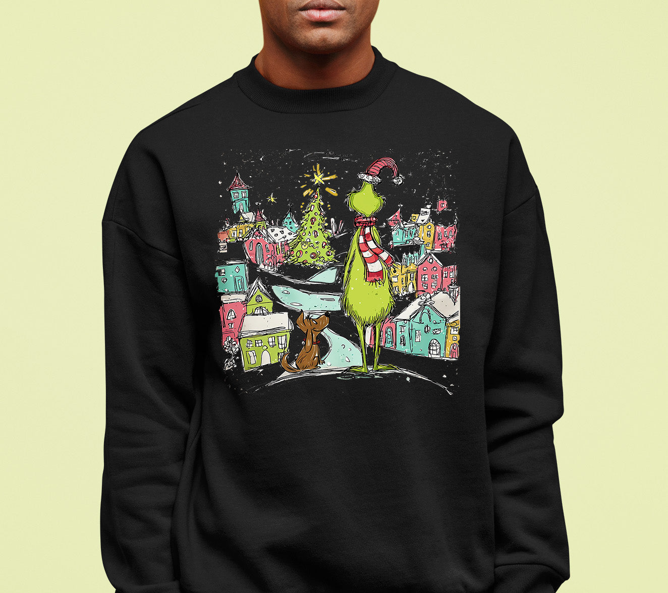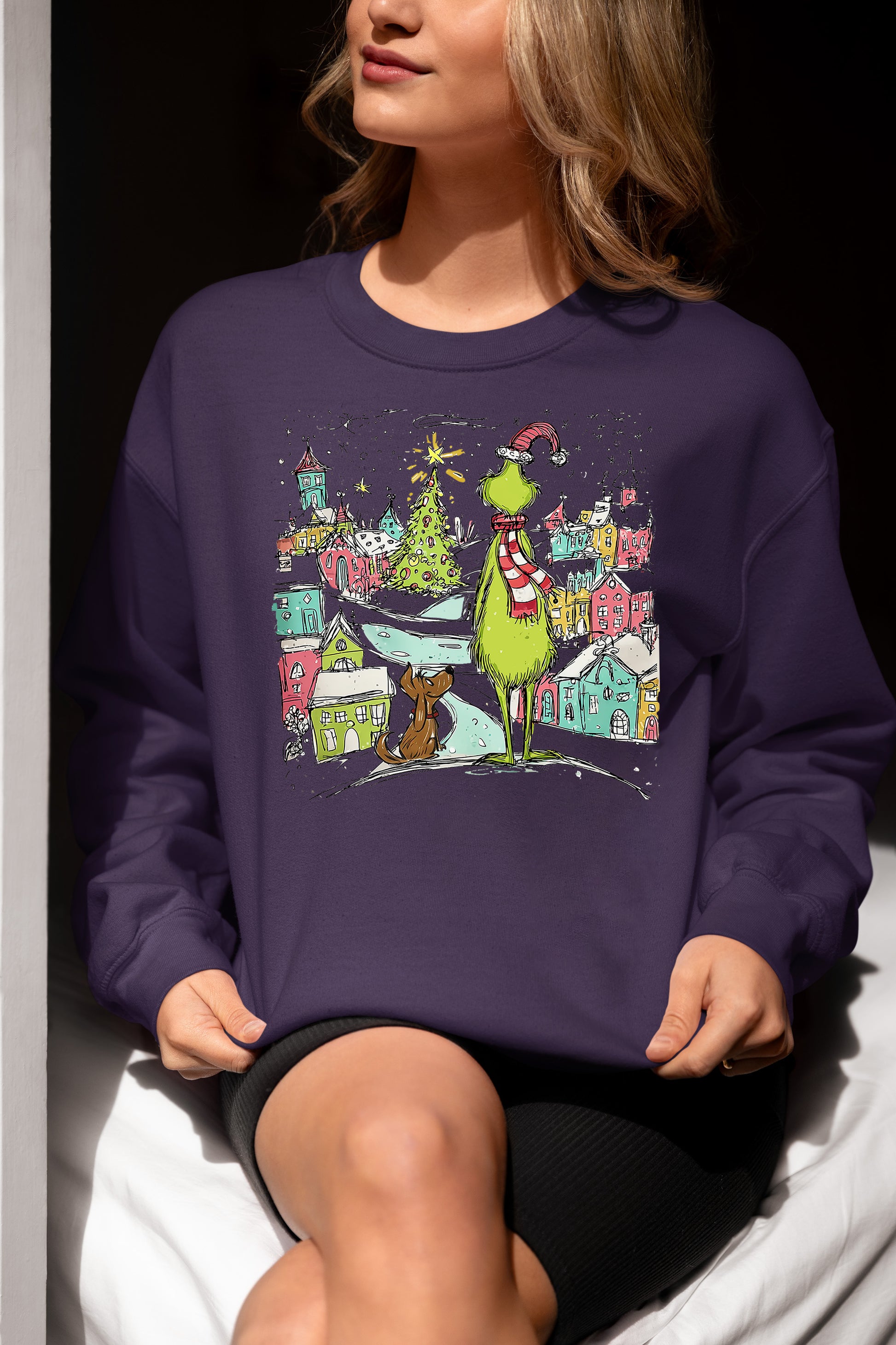 Line Drawing Christmas Illustration - Minimalist Holiday Scene, Nordic Christmas Art, Cozy Winter Gift Sweatshirt