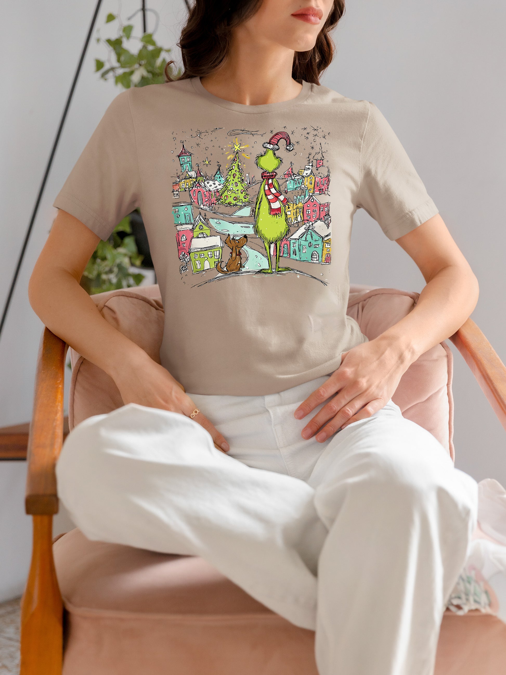 Line Drawing Christmas Illustration - Minimalist Holiday Scene, Nordic Christmas Art, Cozy Winter Gift T-Shirt