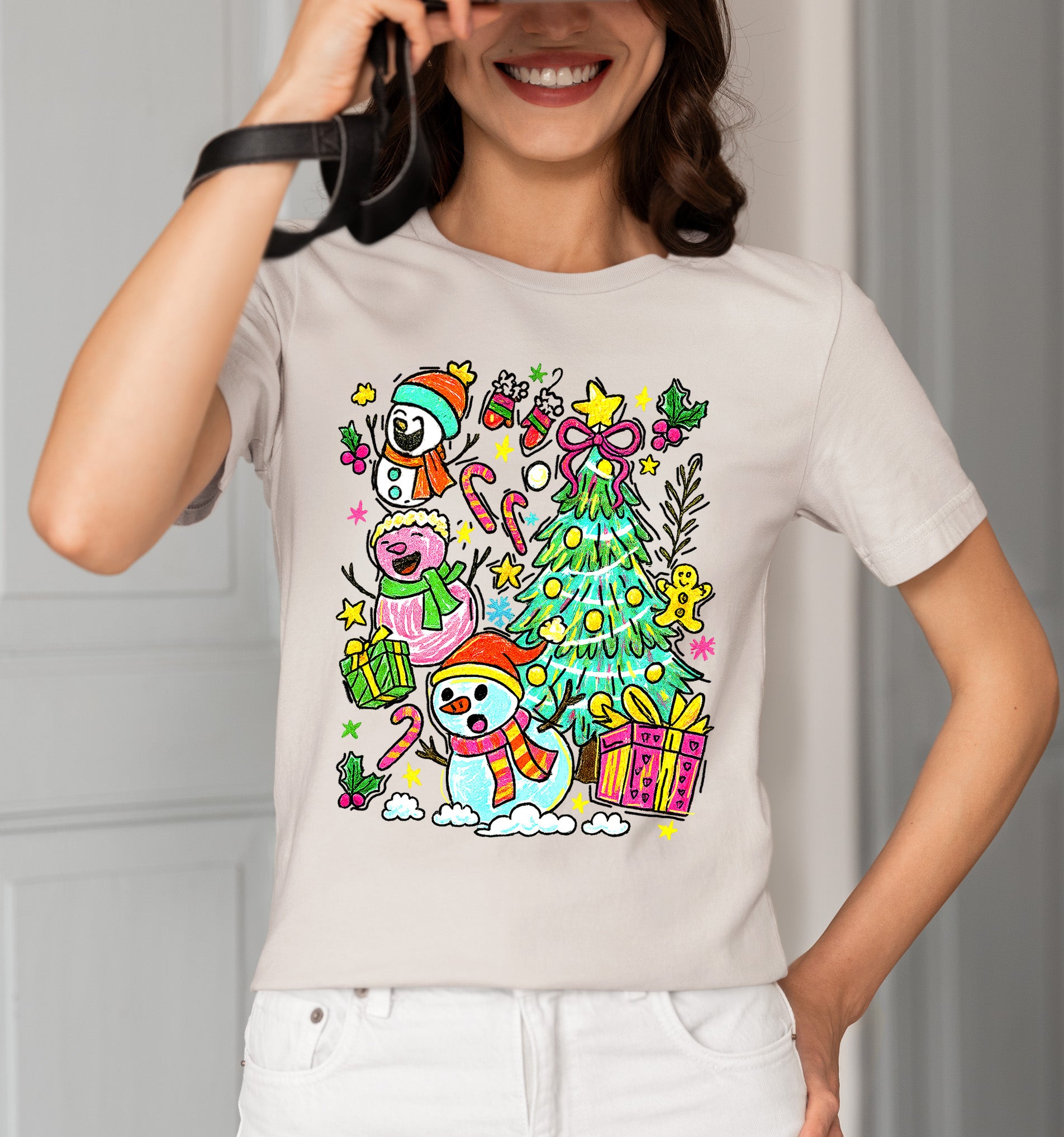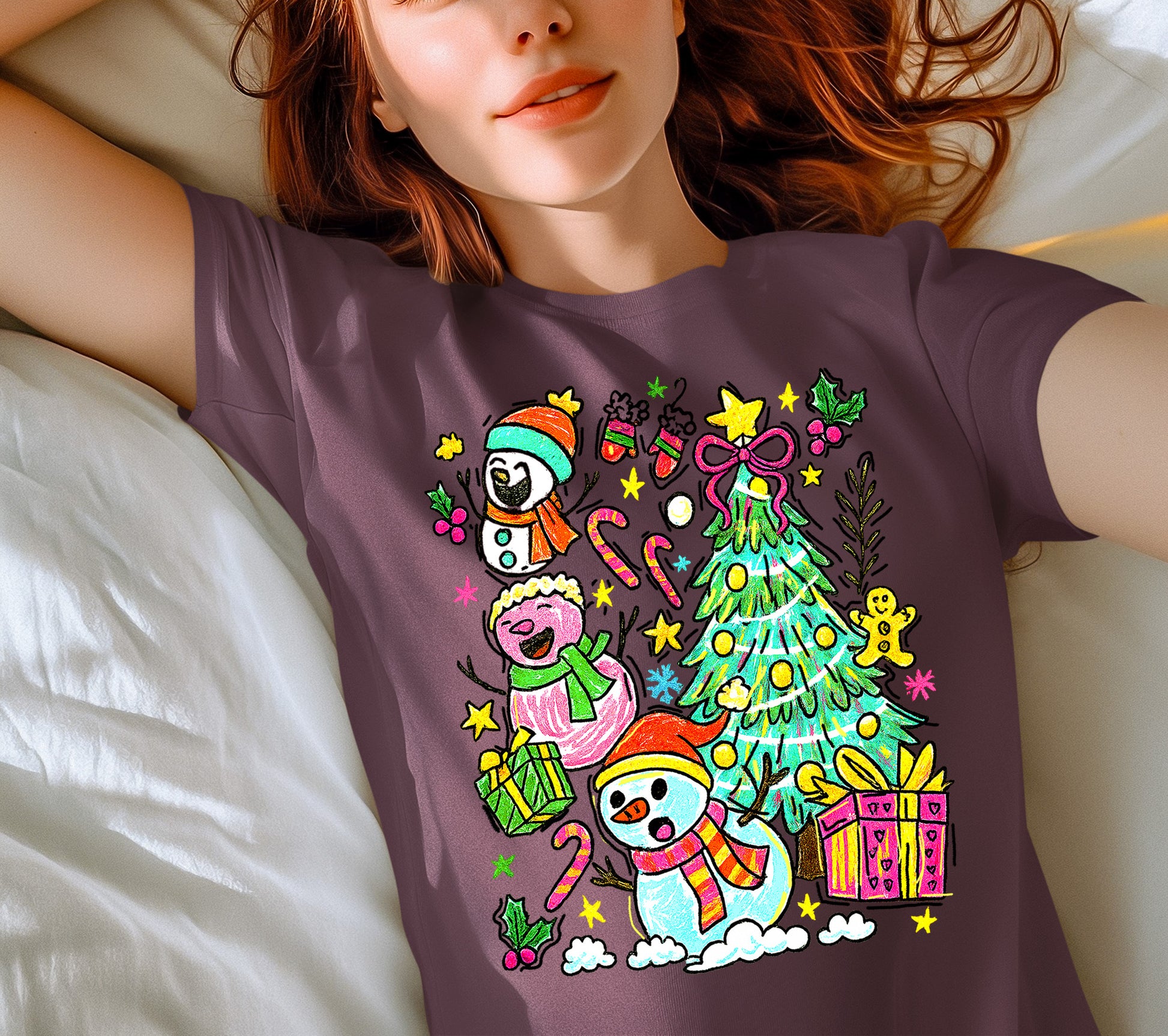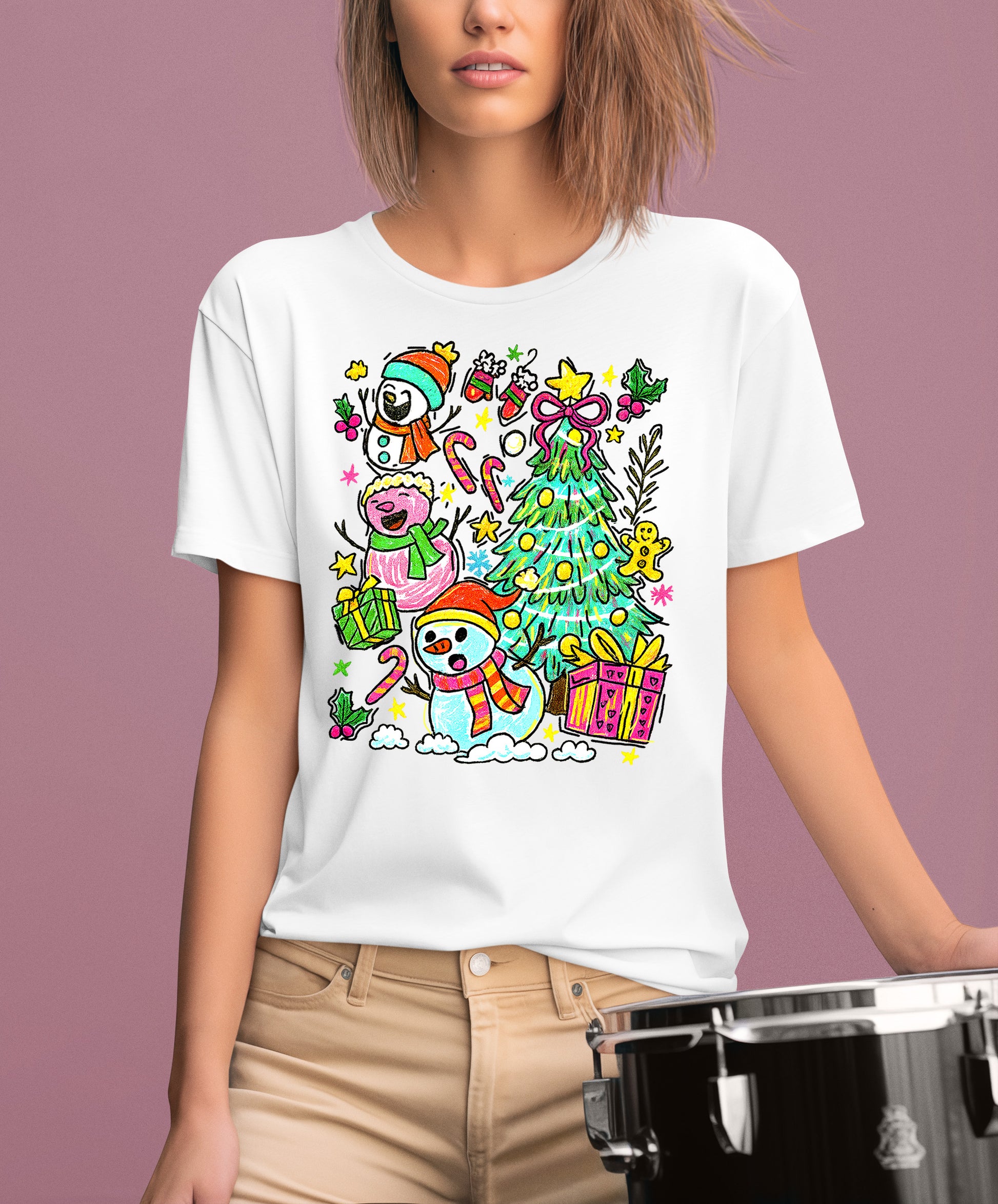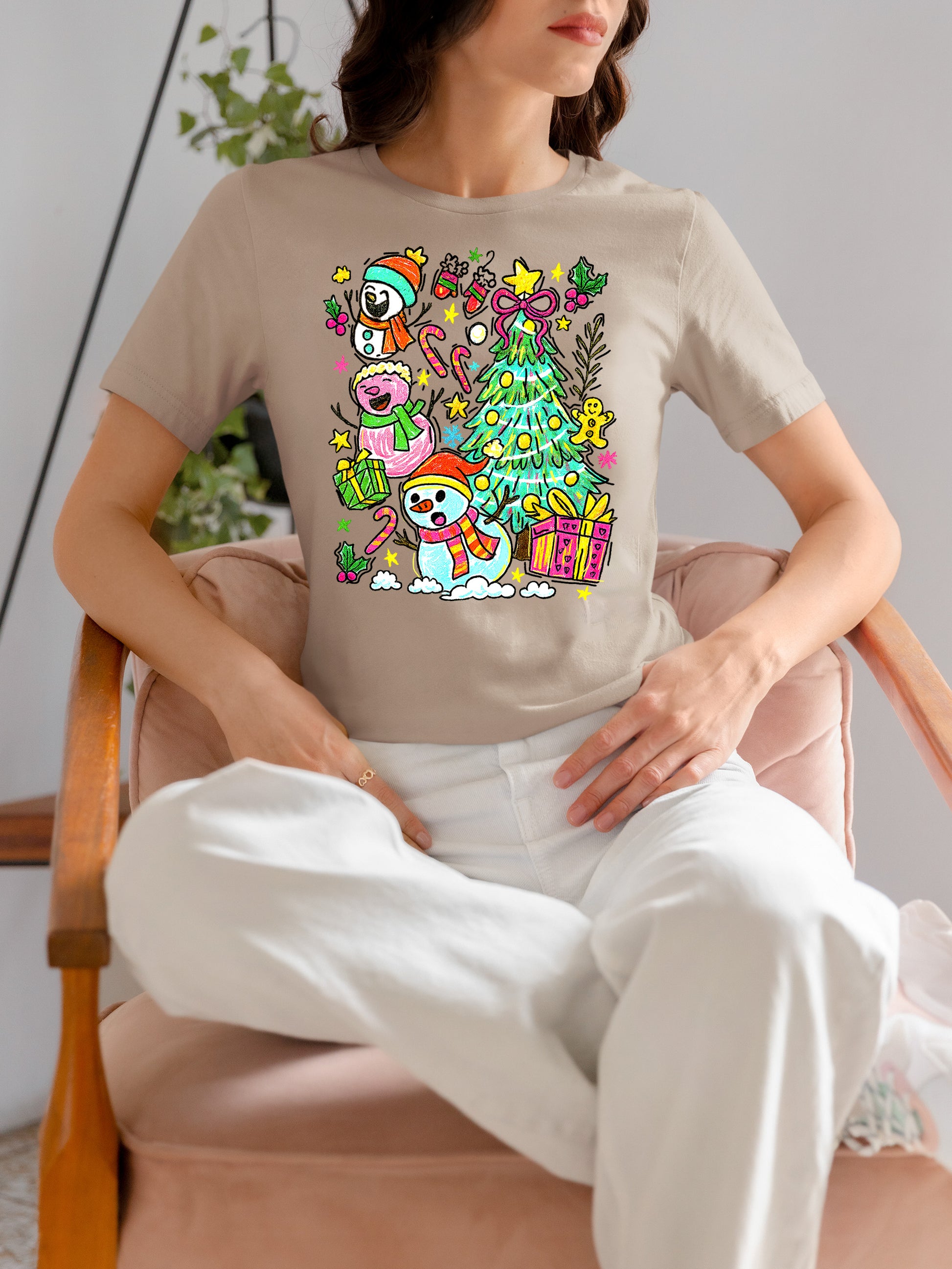 Christmas Line Drawing - Minimalist Holiday Sketch, Festive Snow Scene, Clean Black Ink Line Art for Gifts & Home T-Shirt
