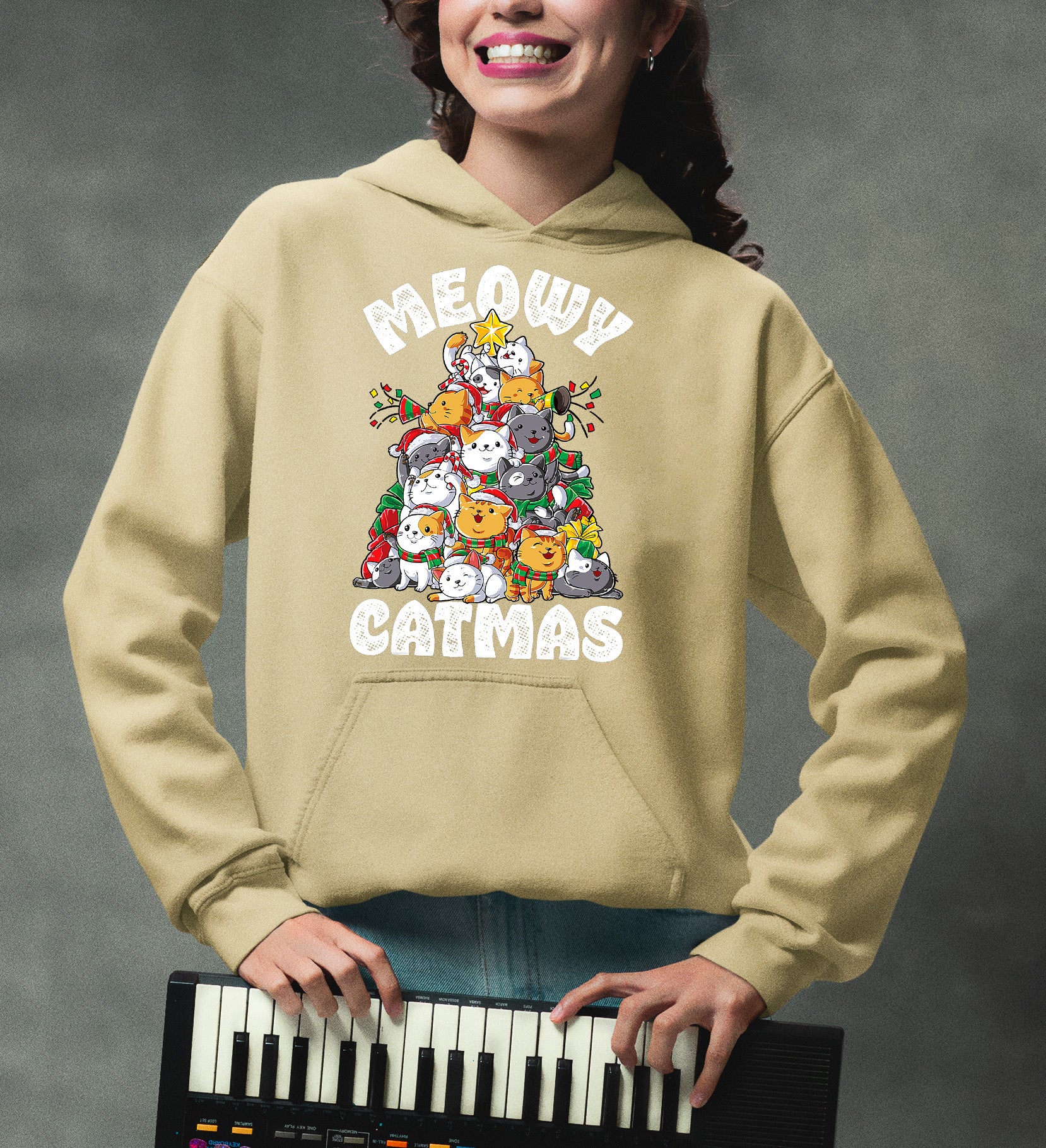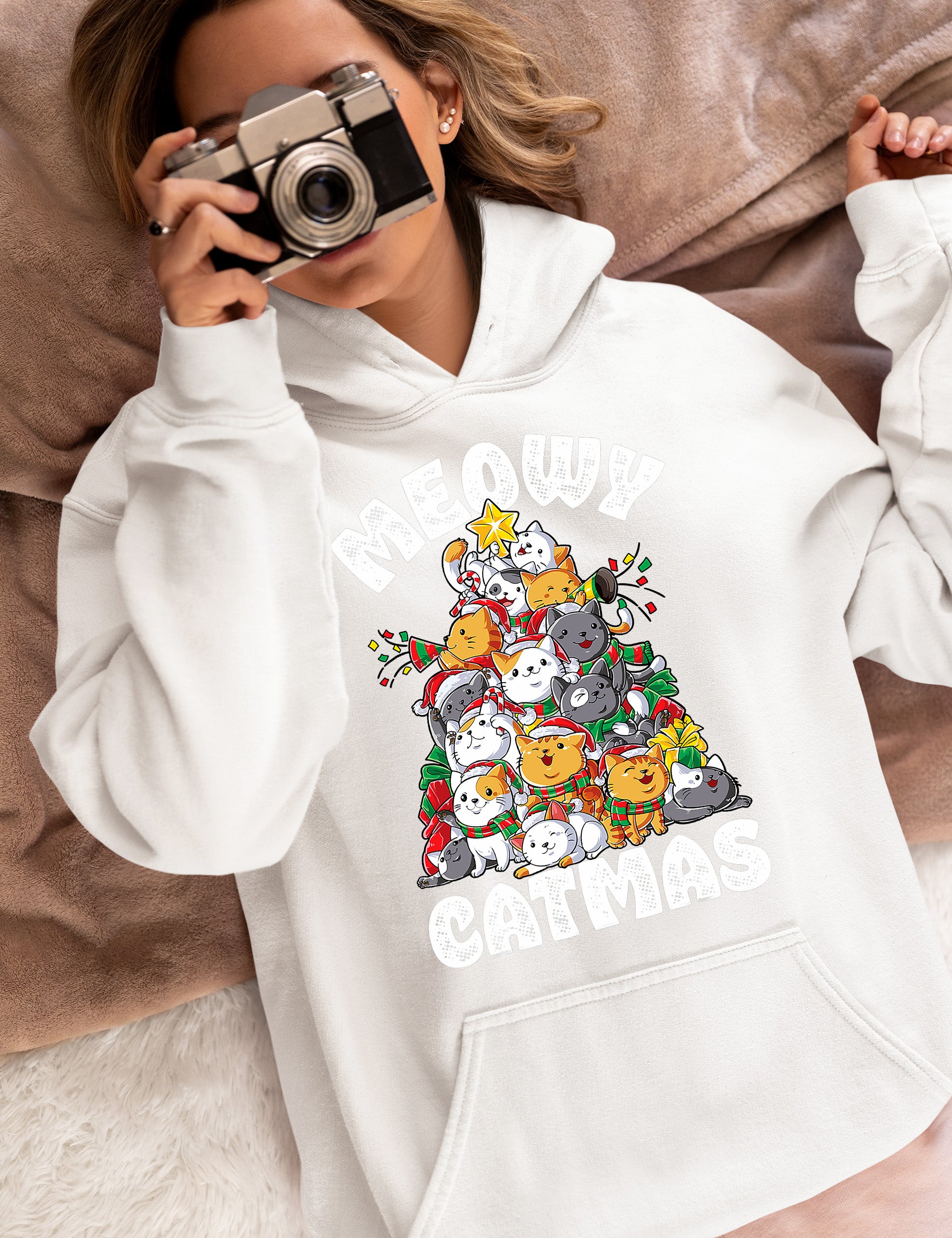 Meowy Cat Tree Christmas Gift for Cats - Festive Cat Condo, Holiday Cozy Shelter, Yuletide Cat Furniture, Seasonal Cat House Hoodie