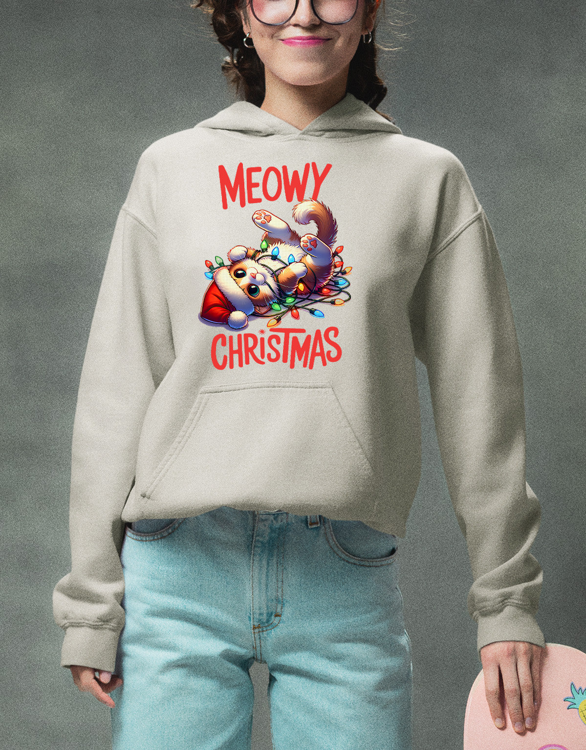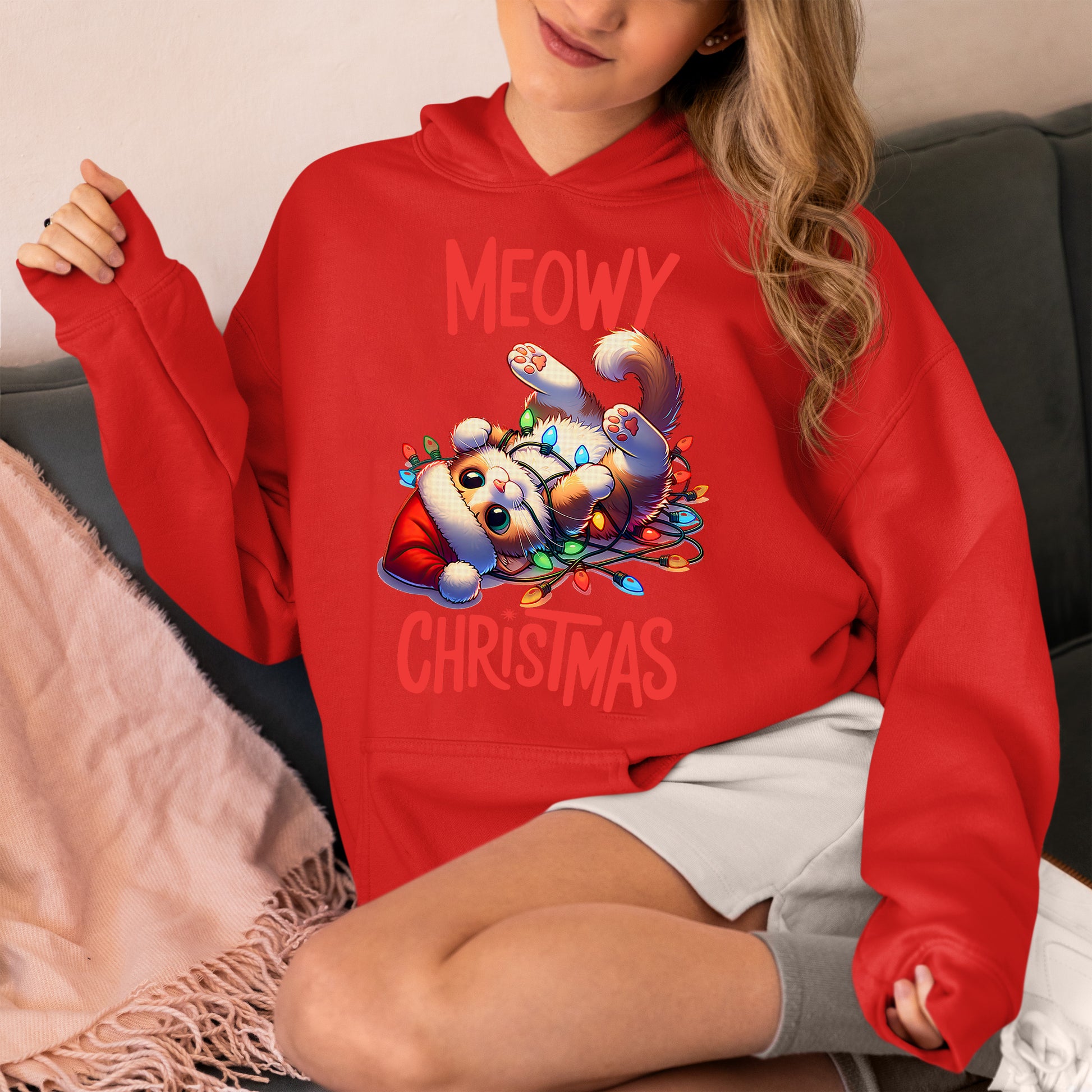 Meowy Christmas Cat Illustration, Festive Holiday Poster for Cat Lovers, Cozy Seasonal Gift, Cute Feline Artwork Hoodie