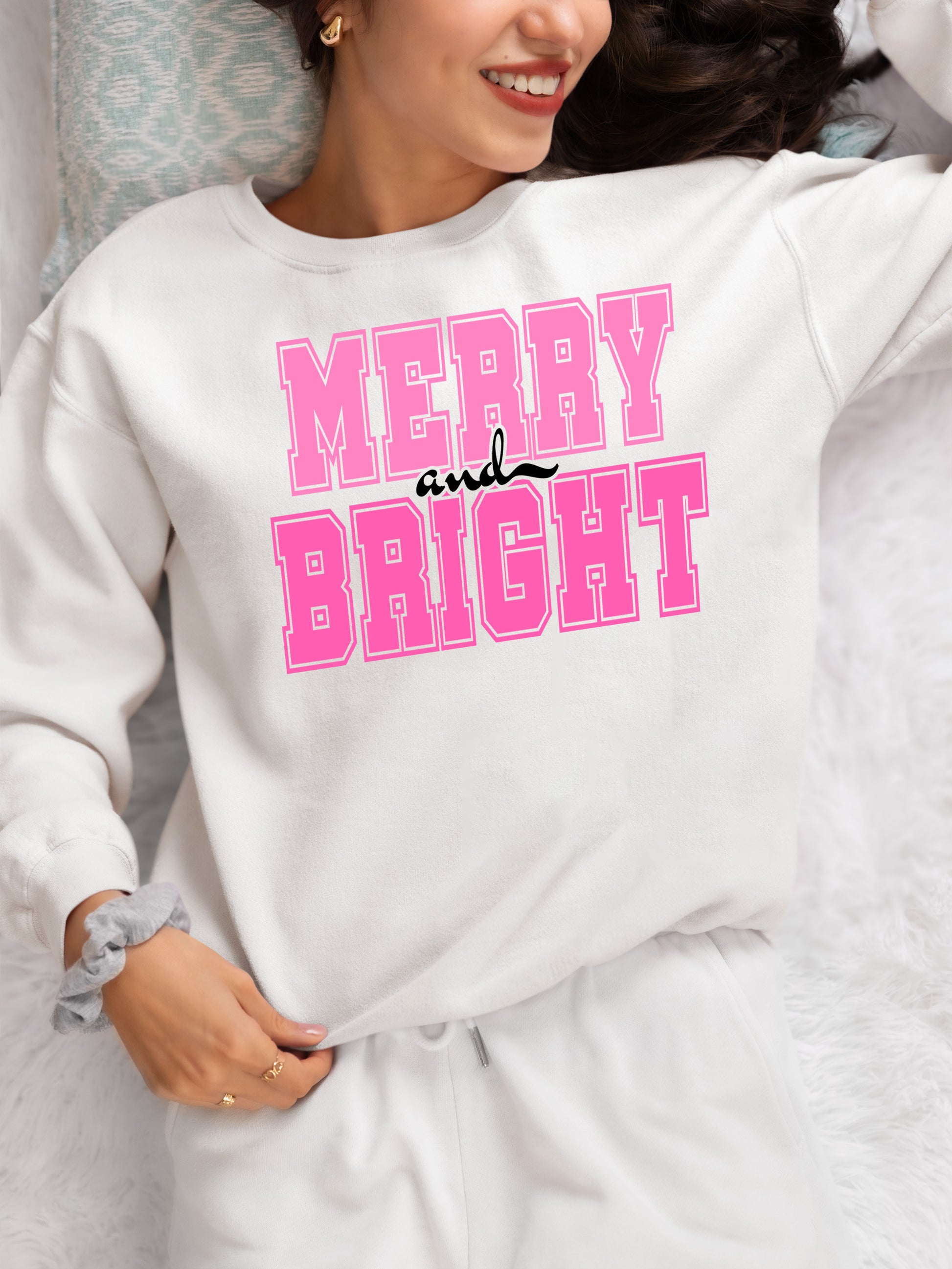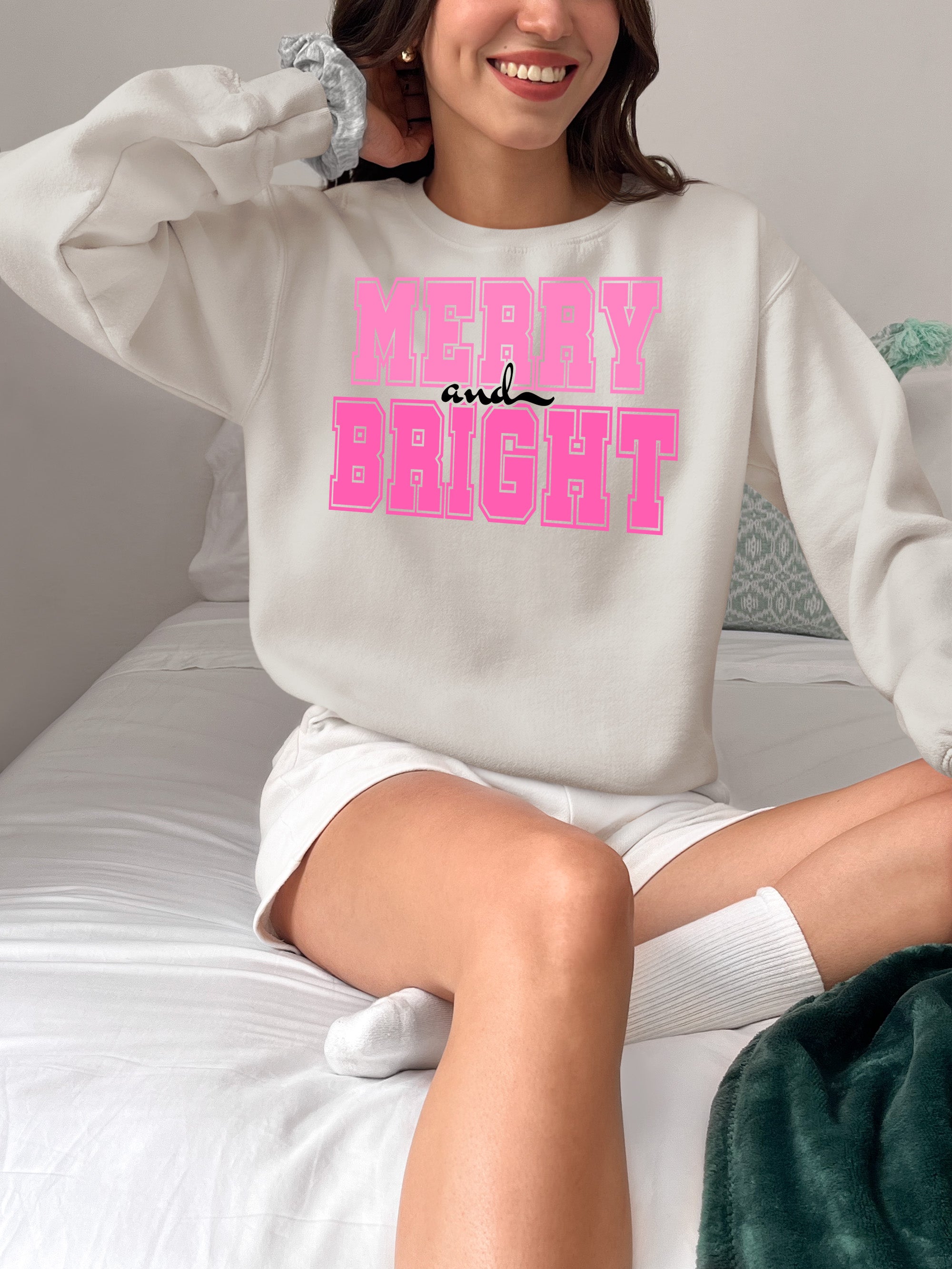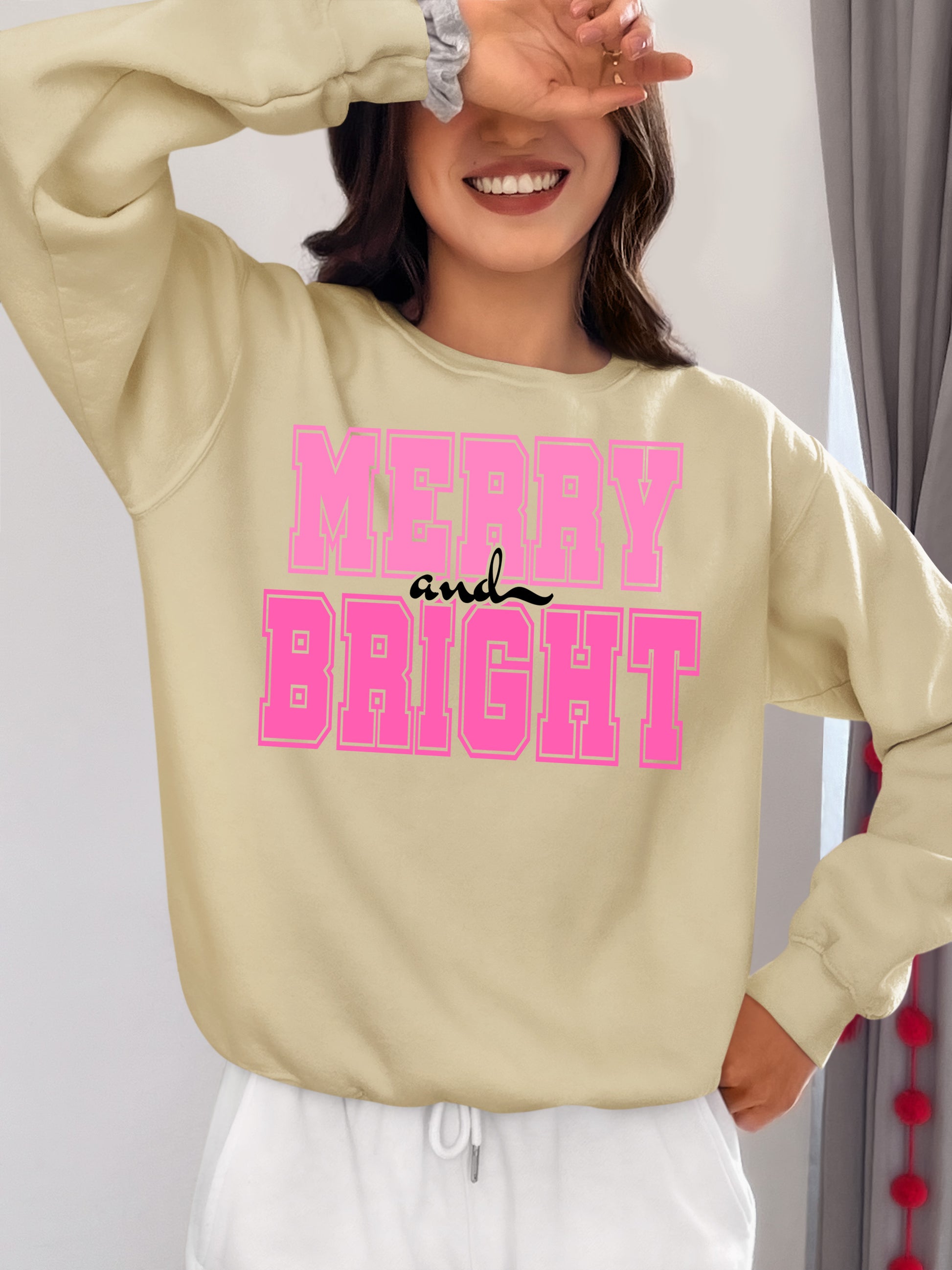 Merry and Bright Christmas Jewelry Gift - Festive Holiday Pendant, Handmade Silver Tone Accessory, Seasonal Keepsake Sweatshirt