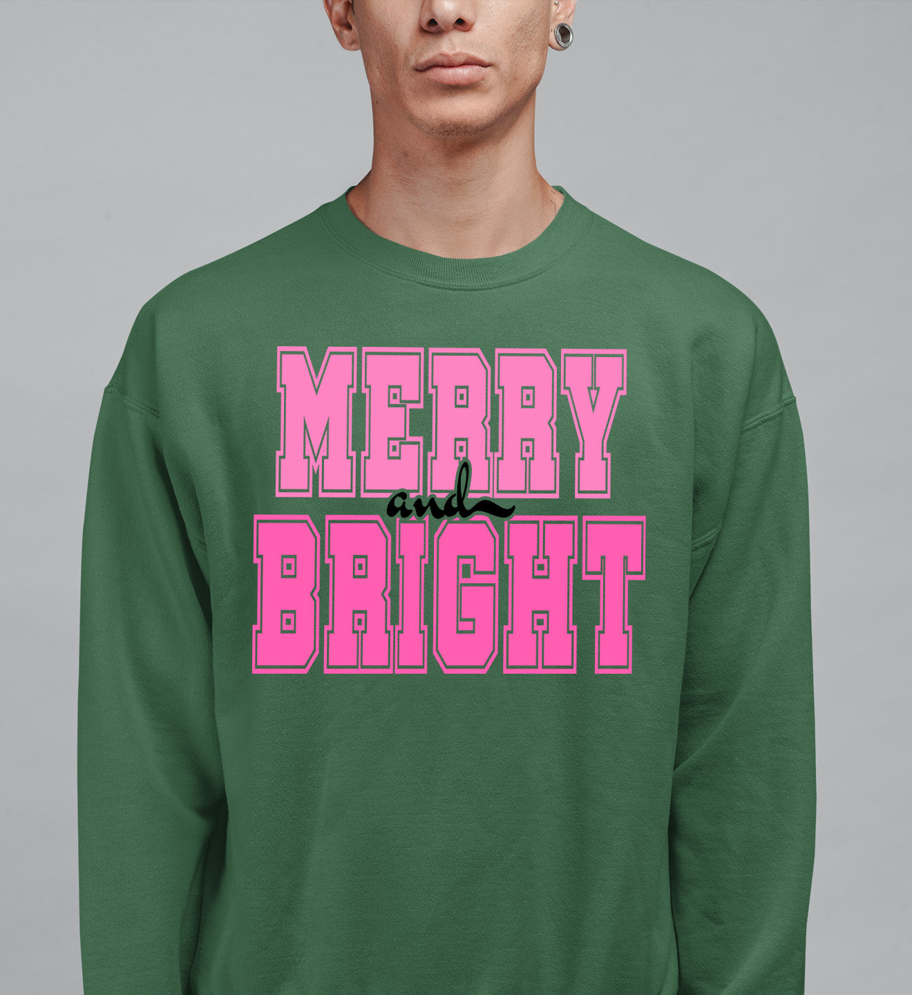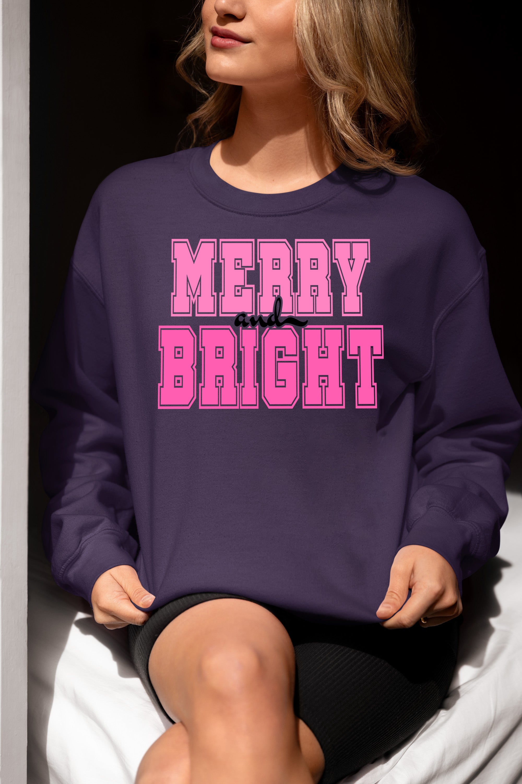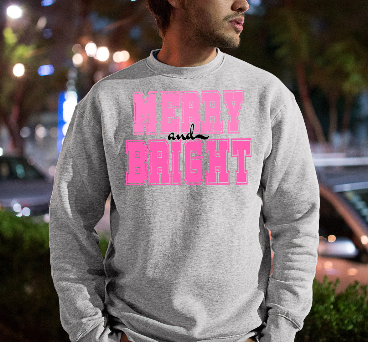 Merry and Bright Christmas Jewelry Gift - Festive Holiday Pendant, Handmade Silver Tone Accessory, Seasonal Keepsake Sweatshirt
