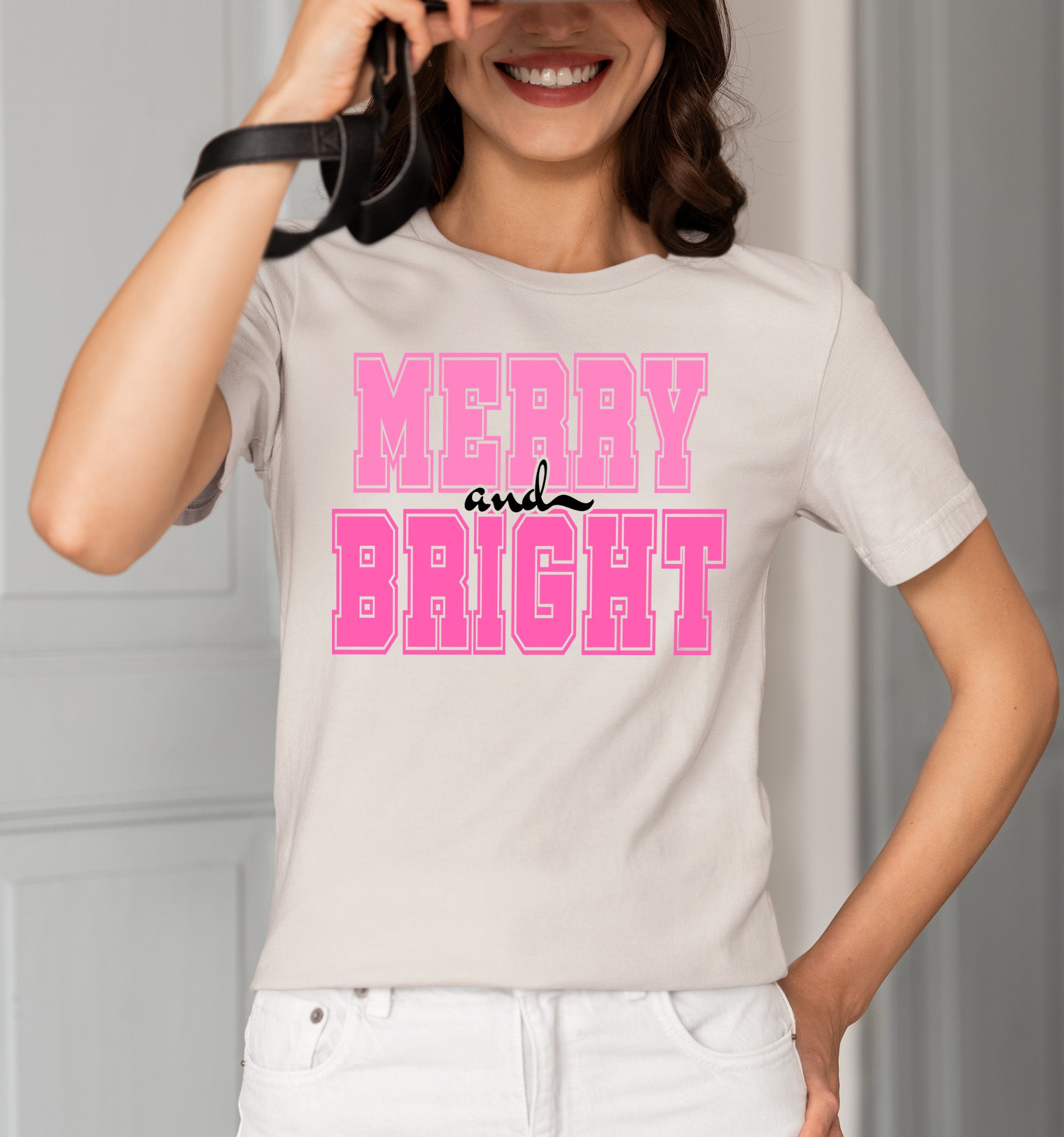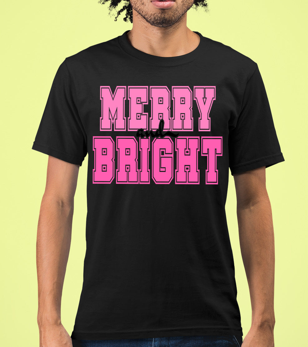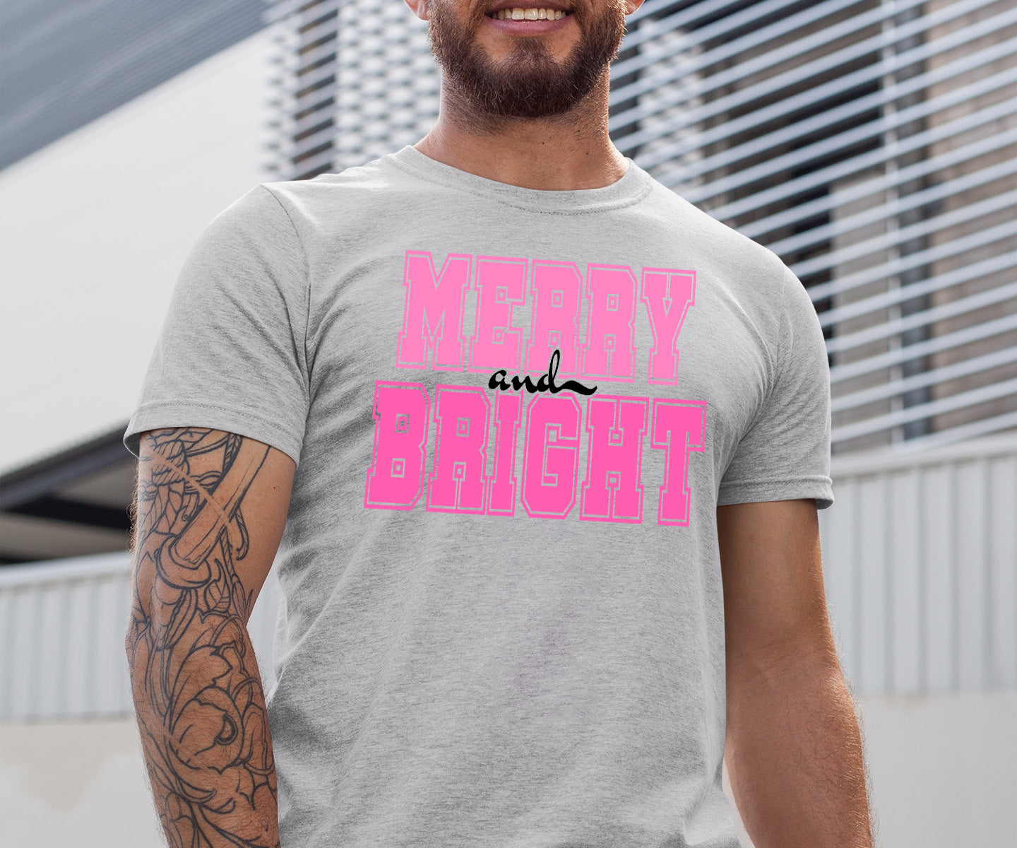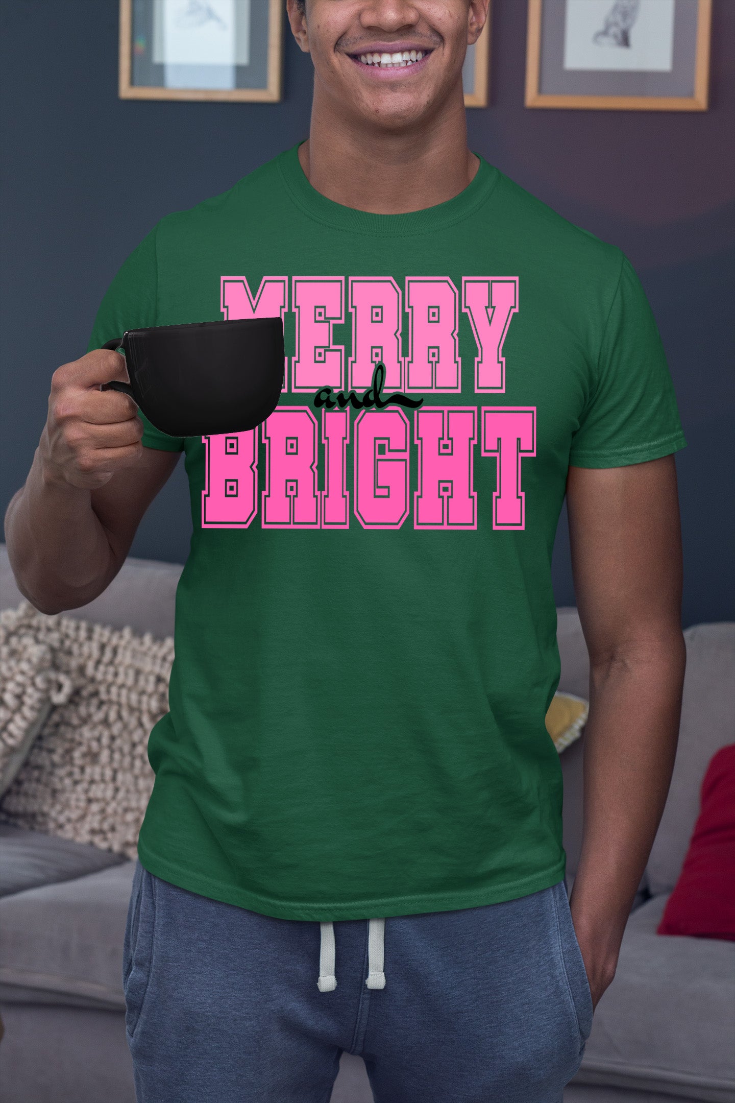 Merry and Bright Christmas Jewelry Gift - Festive Holiday Pendant, Handmade Silver Tone Accessory, Seasonal Keepsake T-Shirt