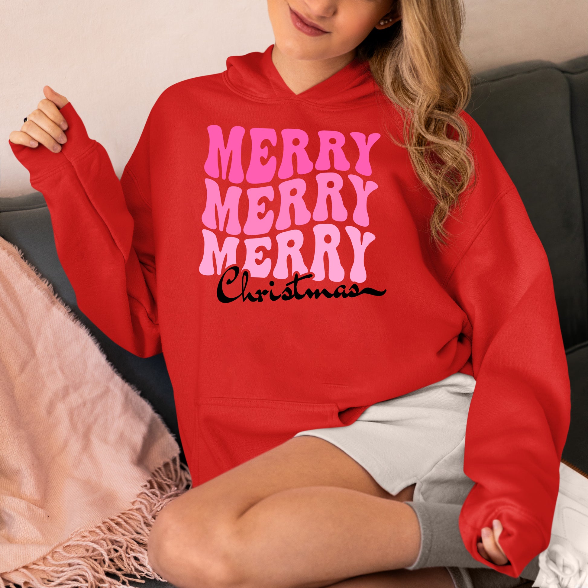 Merry Merry Merry Christmas - Handmade Keepsake Gift for Cozy Festive Cheer Hoodie