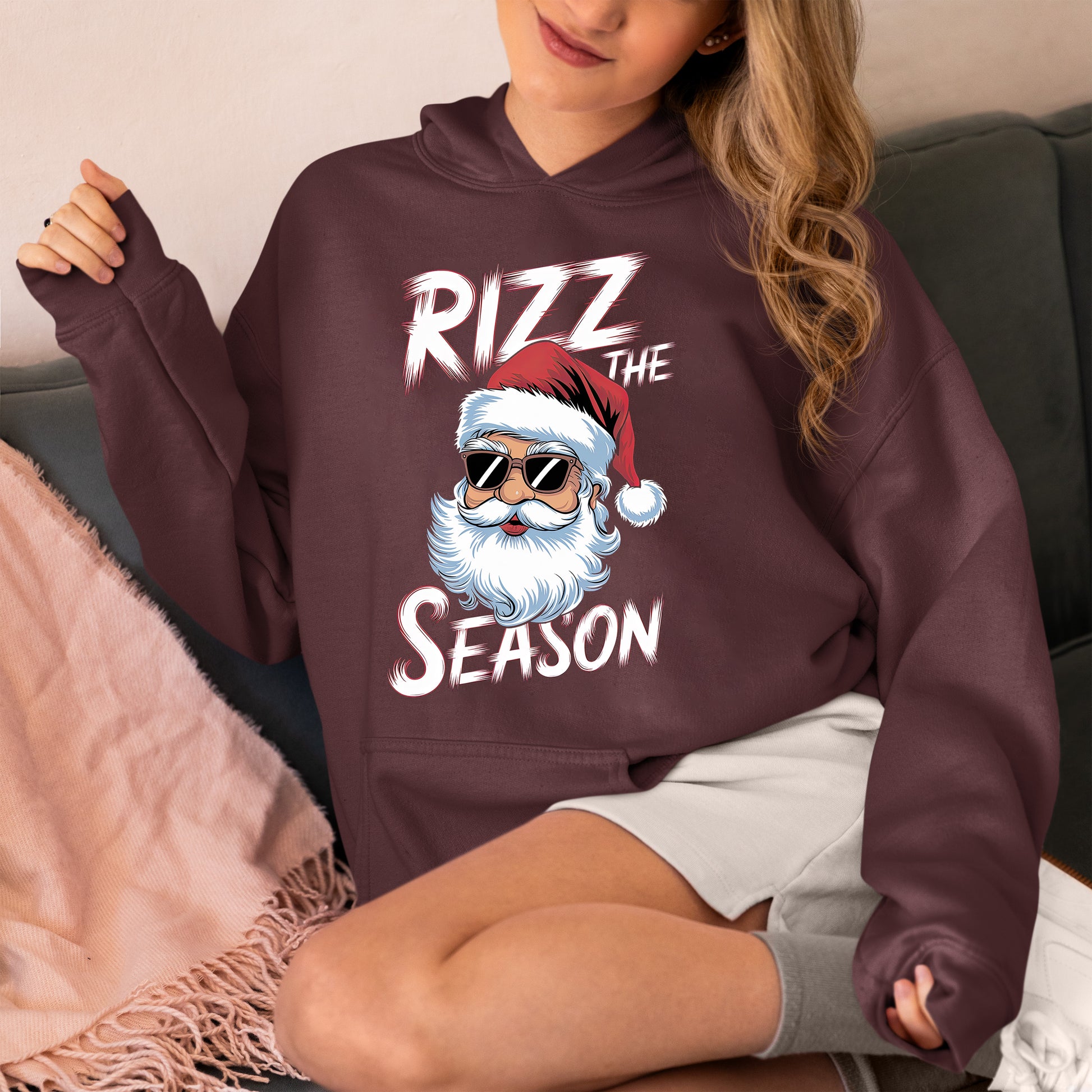 Rizz the Seasonn Santa Sunglasses – Christmas Santa Glasses, Funny Holiday Fashion Accessory, Festive Seasonal Gift Idea, Cozy Cheer Hoodie