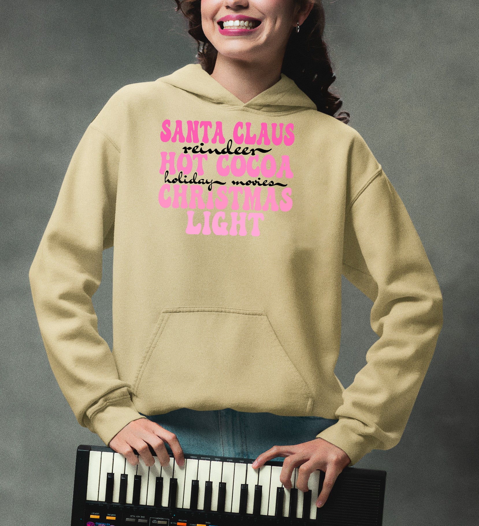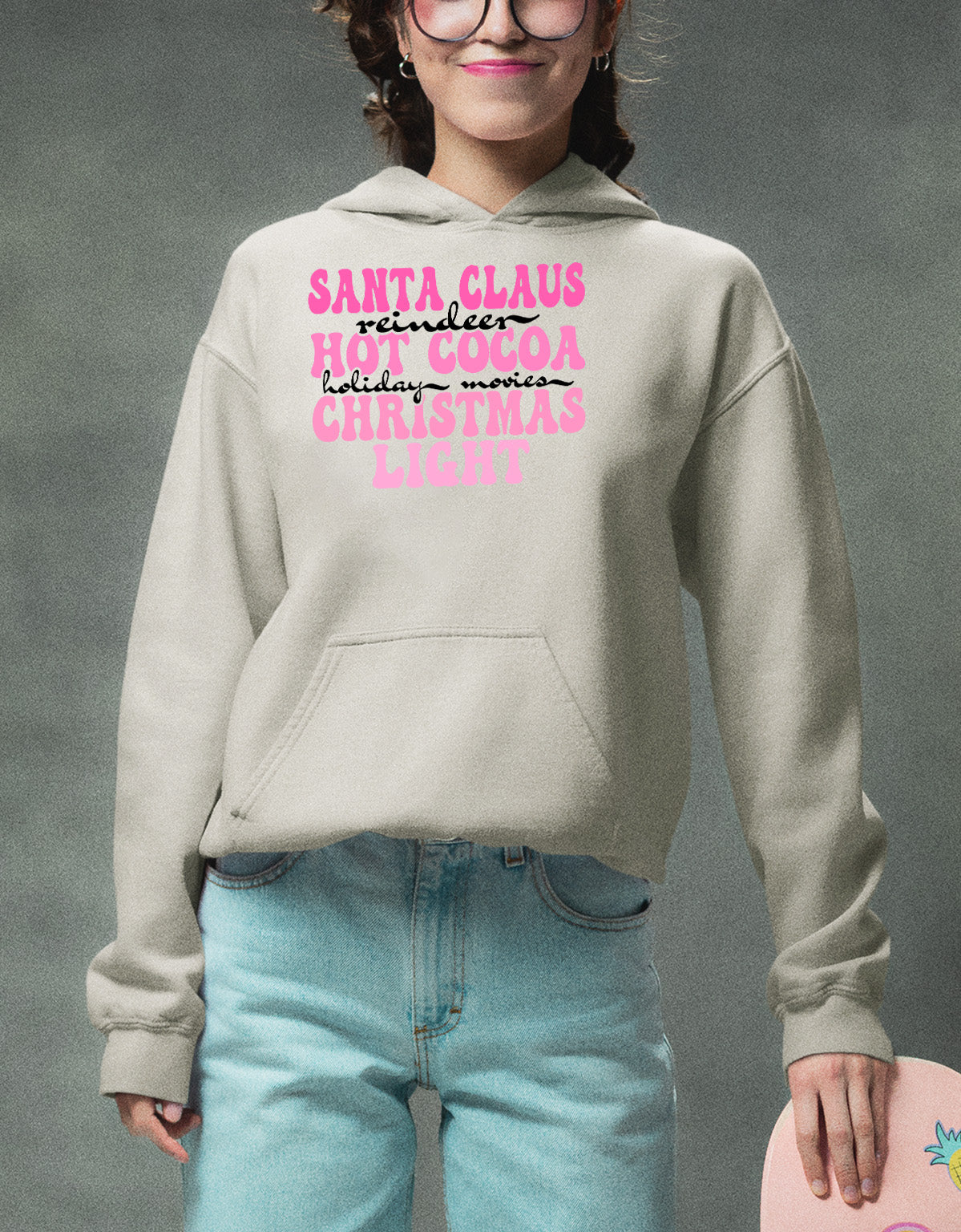Santa Claus Reindeer Christmas Scene with Hot Cocoa - Cozy Holiday Charm for Gifts & Collectibles Hoodie