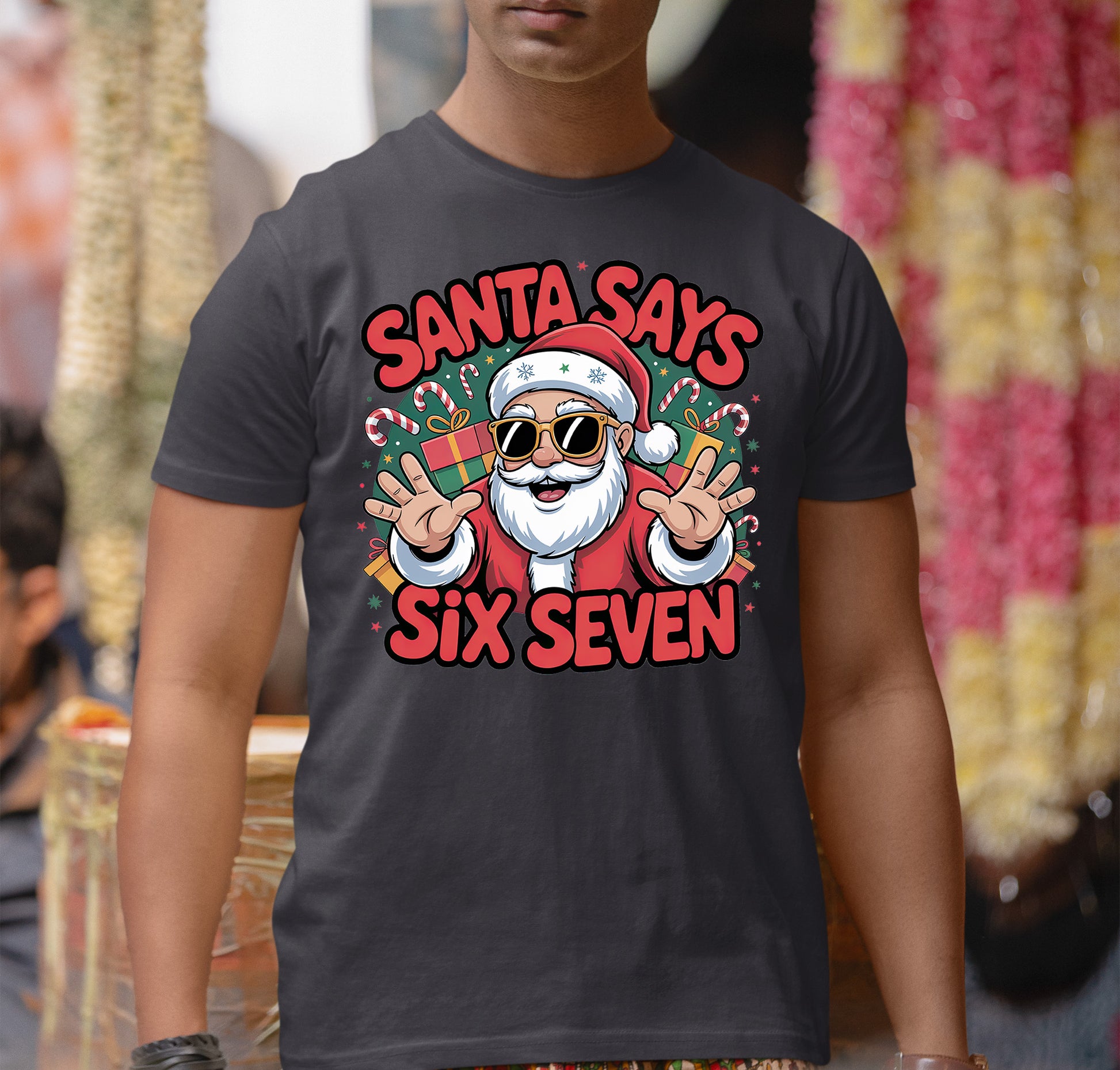 Santa Says Six Seven - Christmas Phrase for Festive Season Gift, Sticker, or Apparel T-Shirt
