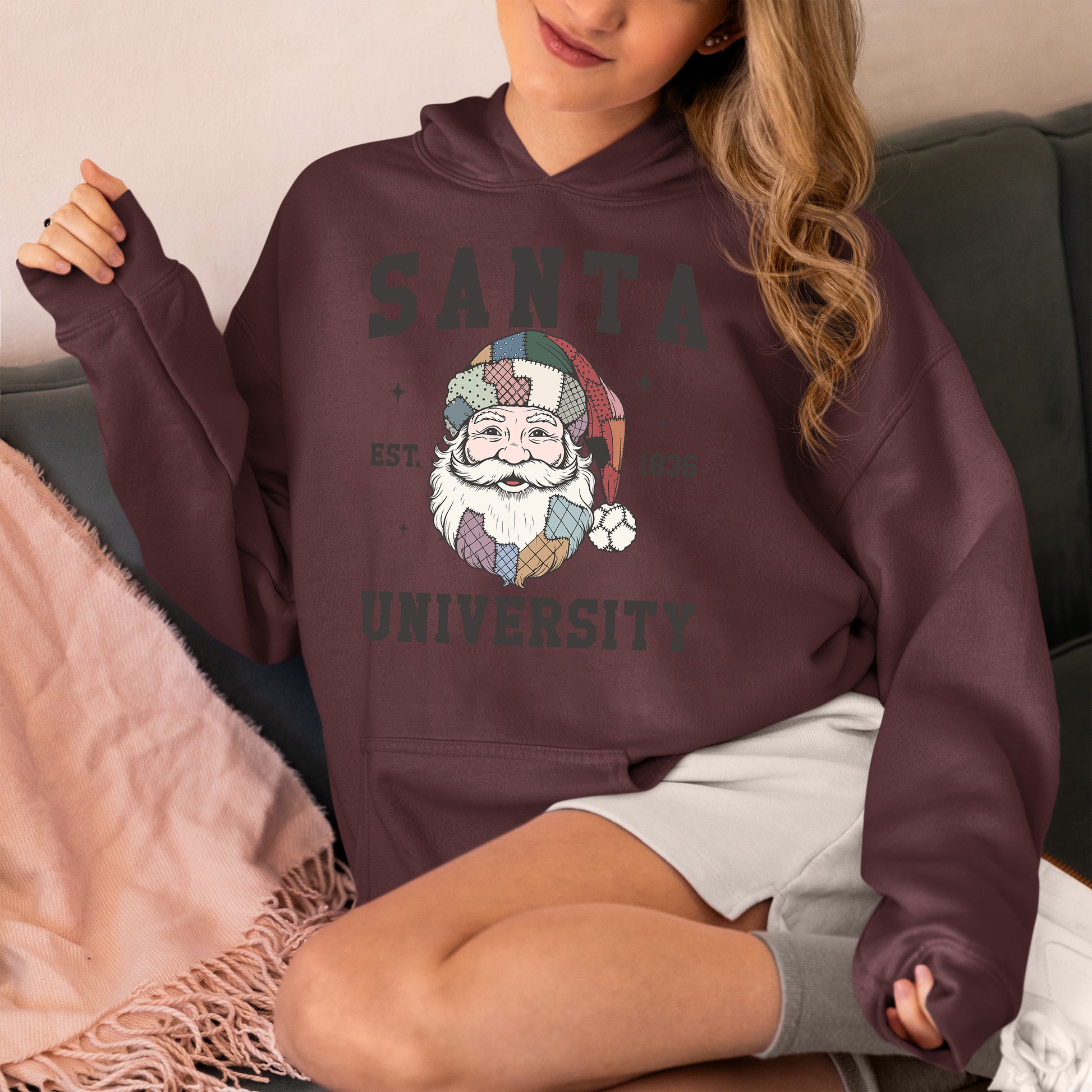 Santa University Christmas Collection, Santa Claus Gift, North Pole Education Theme, Festive Holiday Cheer Hoodie
