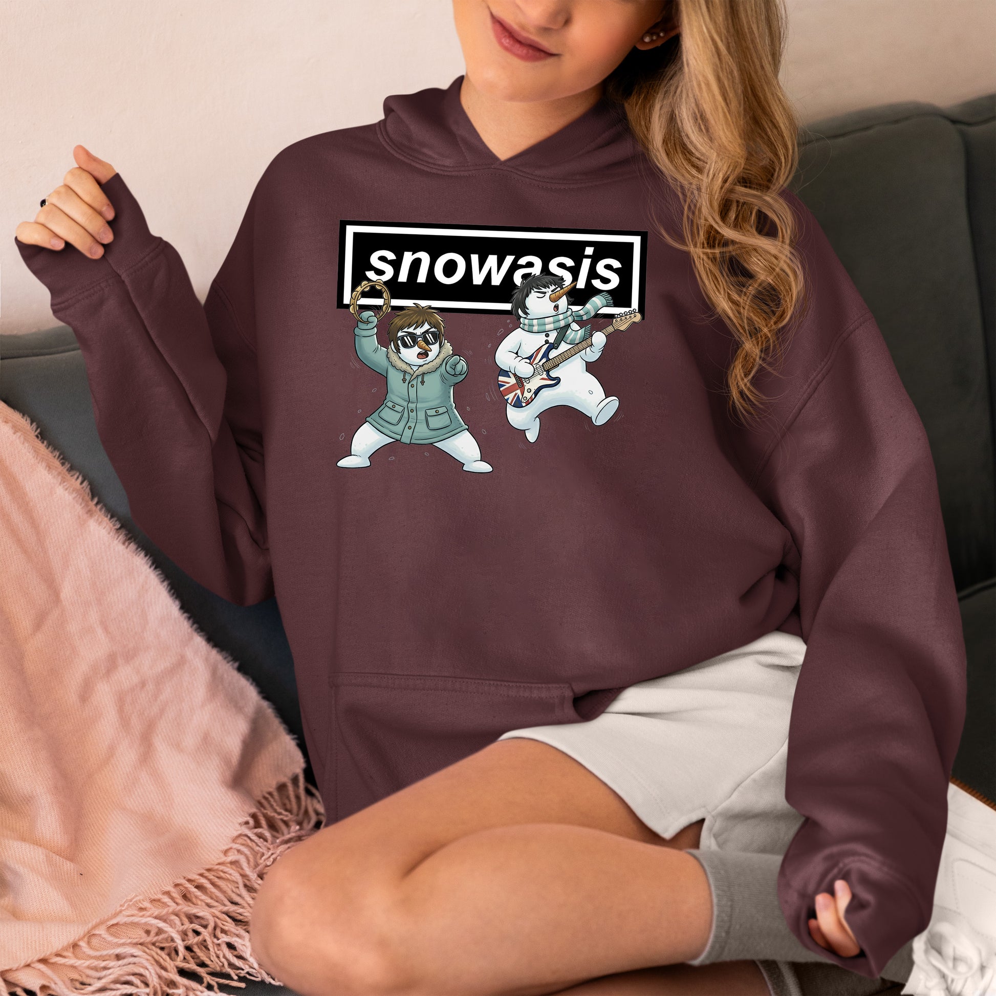 Christmas Snowasis rocking on a snowy hillside, cozy festive scene for holidays, Snowasis rocking on Hoodie