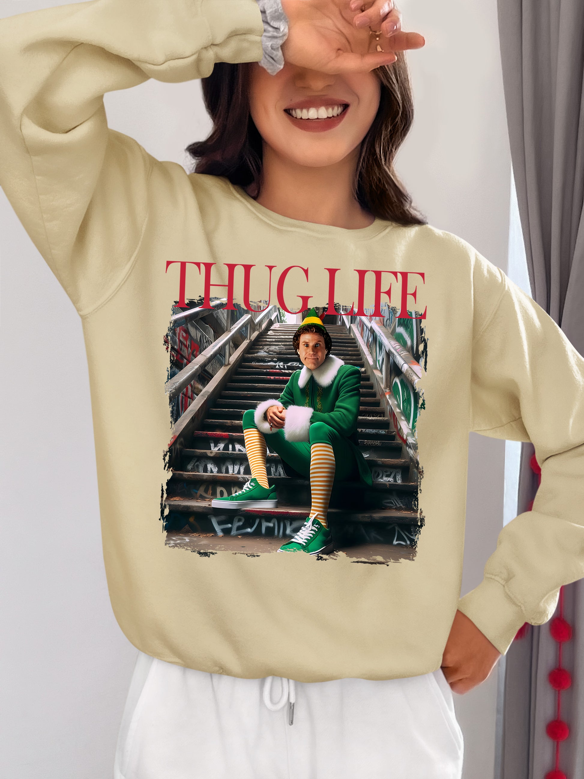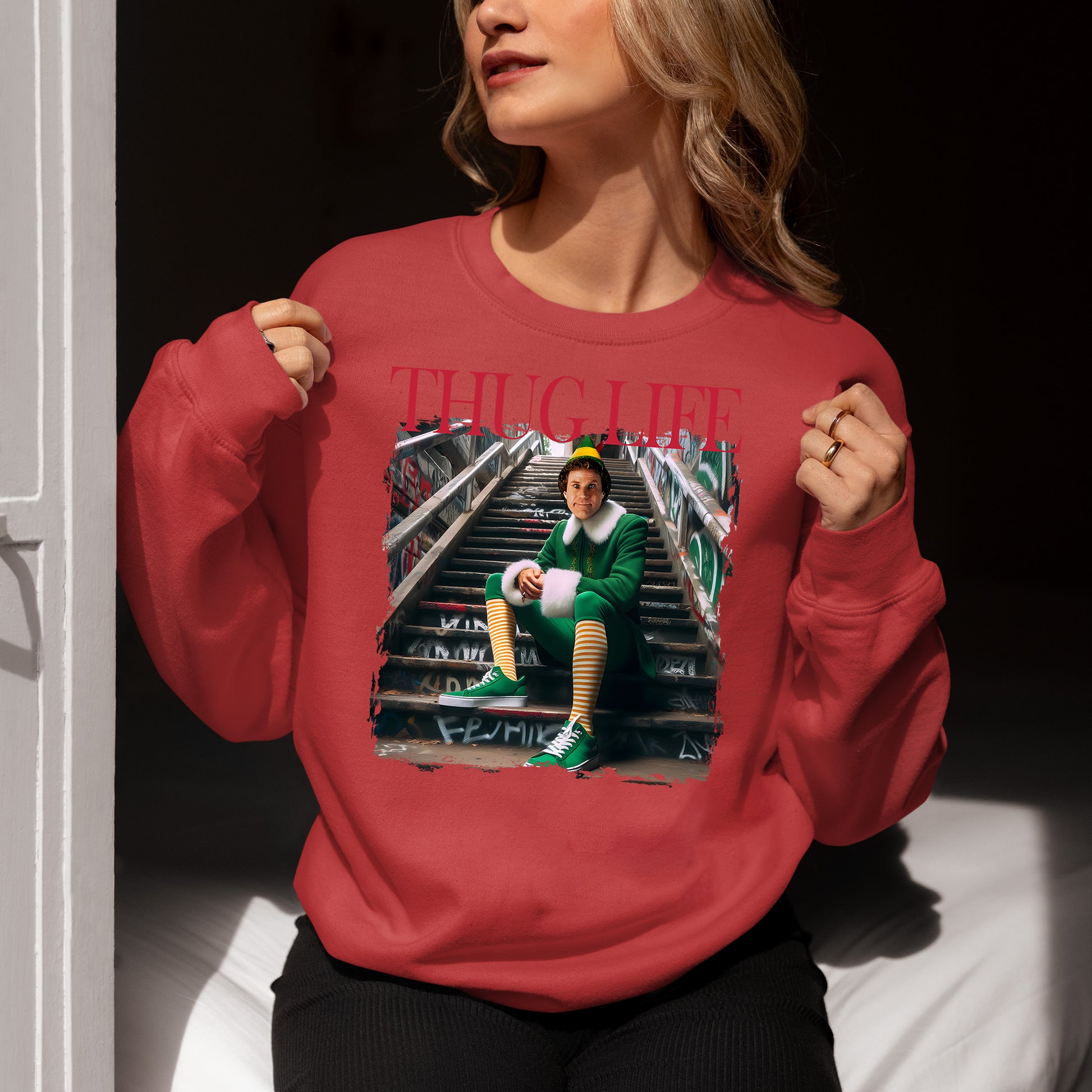 Thug Life Elf on the Streets | Christmas Humor, Naughty Elf Vibe, Festive Season Style, Holiday Laughs Gift Idea Sweatshirt
